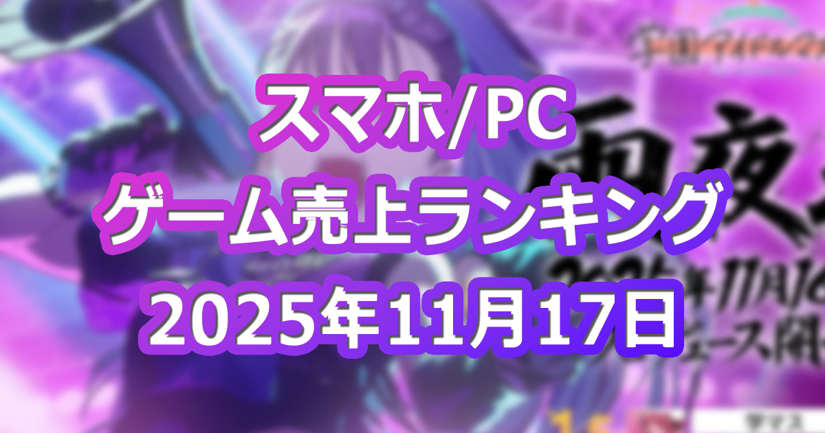 スマホ・PCゲーム市場の売上ランキングを毎週月曜日に定点観測するコーナーです。