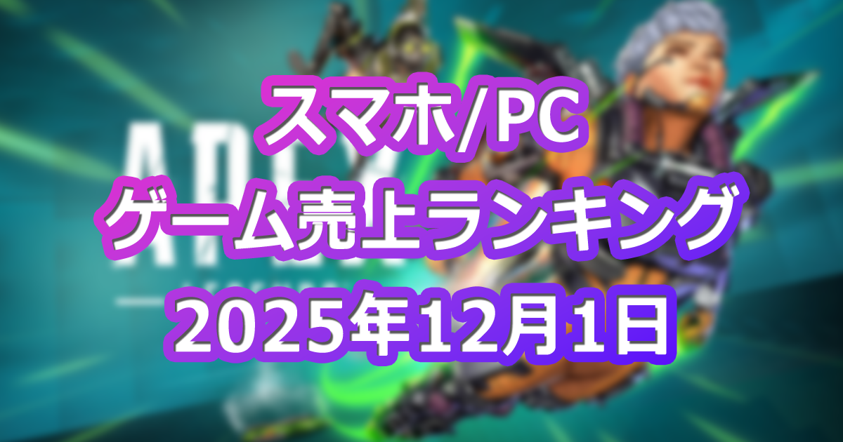 スマホ・PCゲーム市場の売上ランキングを毎週月曜日に定点観測するコーナーです。