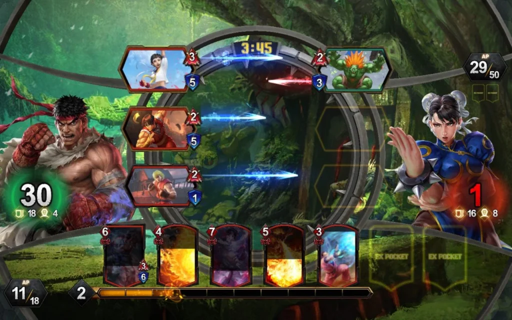 ガンホーとカプコンが共同開発した「アルティメットカードバトル」ゲームです。『バイオハザード』『モンスターハンター』『ストリートファイター』『デビル メイ クライ』など、カプコンの人気タイトルのキャラクターたちがカードとなって登場します。従来のターン制カードゲームとは異なり、5分間の制限時間の中でリアルタイムにコスト(MP)が溜まり、カードを出すスピード感あふれるバトルが特徴です。