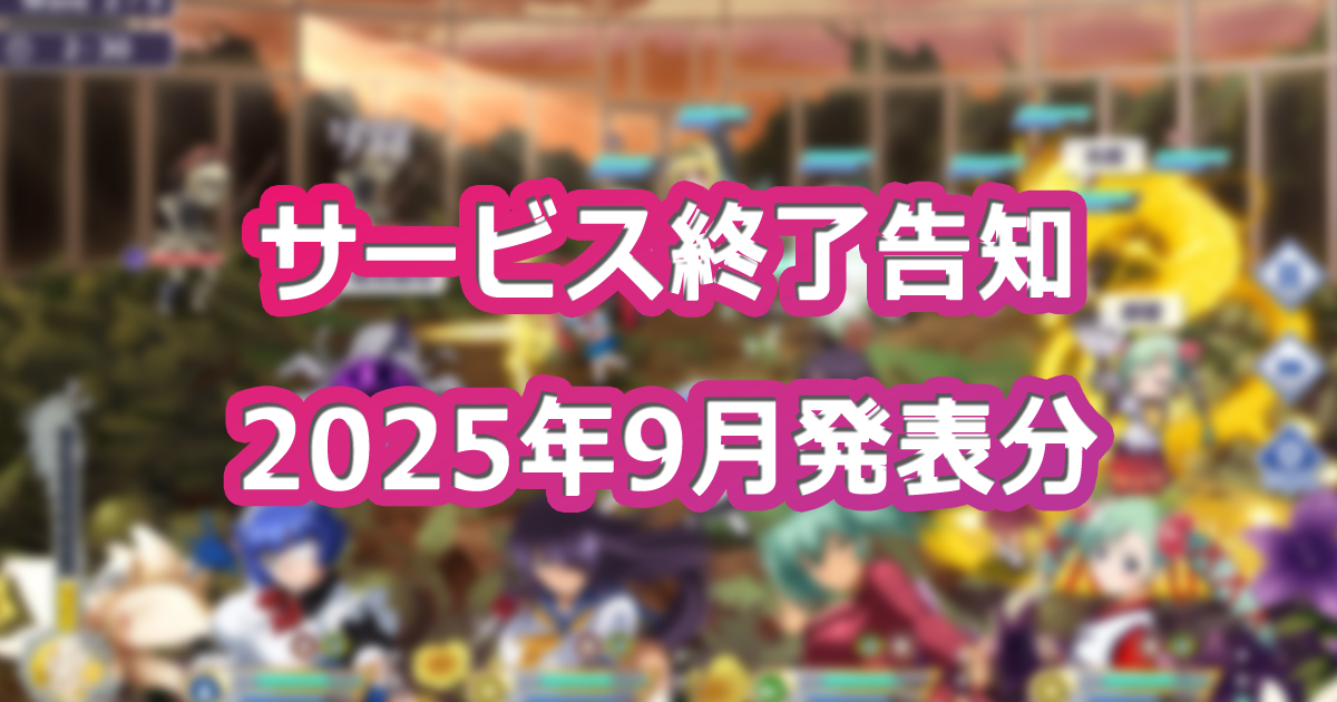 このコーナーでは、ライブサービス型ゲーム(主にスマホゲーム)のサービス終了情報を、発表された月ごとにまとめていきます。